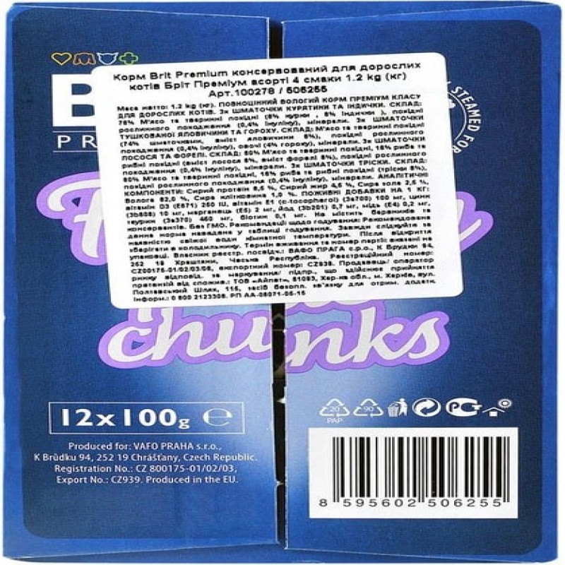 Упаковка вологого корму для кішок Brit Premium сімейна тарілка асорті 4 смаку 100 г х 12 шт (8595602
